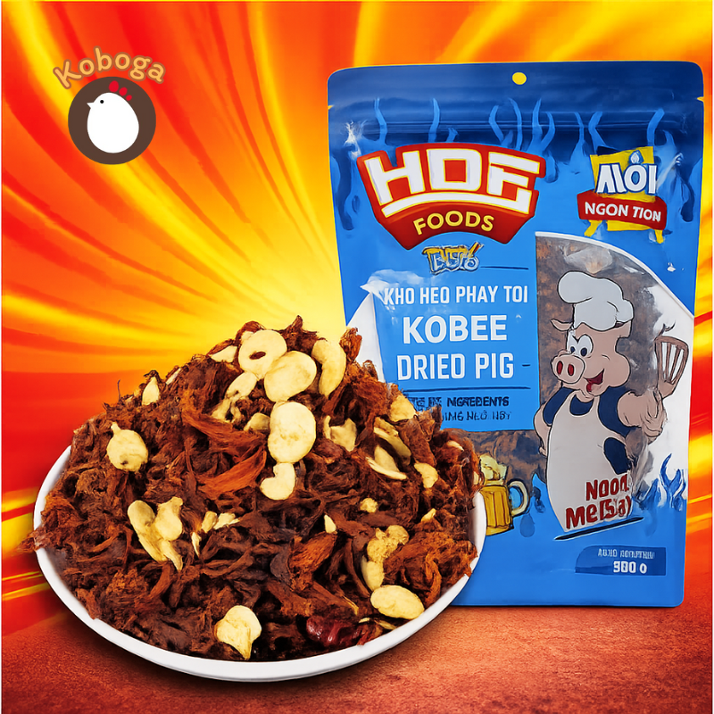 – KHÔ HEO CHÁY TỎI KOBEE là một sản phẩm ĂN VẶT CAO CẤP của công ty Cổ Phần HÀ NỘI DRY FOODS